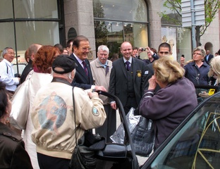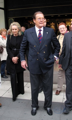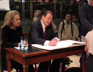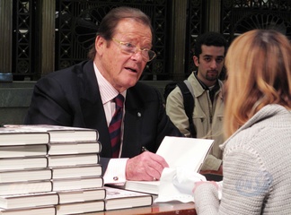 Roger Moore podpisuje swoje ksiazki w Sztokholmie, Szwecja
