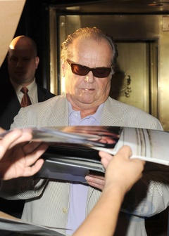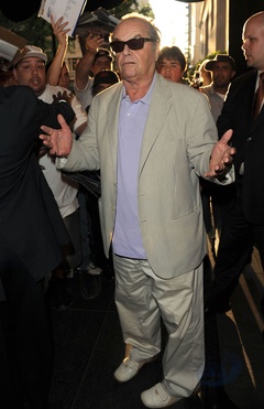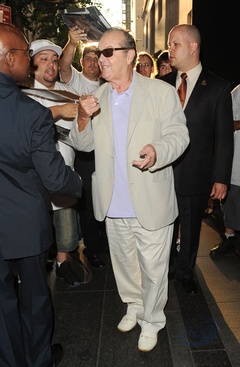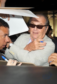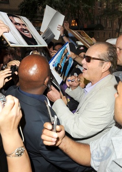 Jack Nicholson rozdaje autografy wychodzac z hotelu w Nowym Jorku