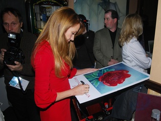Jane Seymour podczas imprezy promuje wlasne obrazy przygotowane dla amerykanskiej druzyny olimpijskiej do Pekinu, New York