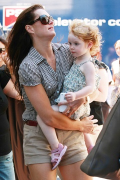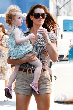 Brooke Shields z corka Grier na planie filmu "Lipstick Jungle", Nowy Jork