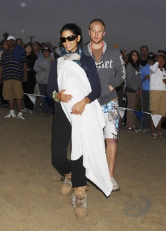 Matthew McConaughey i Camila Alves z dzieckiem podczas Nautica Malibu Triathlon