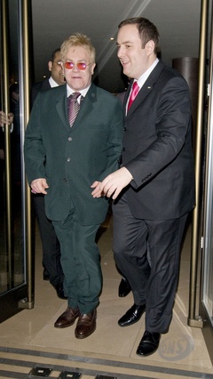 Elton John i David Furnish ida do Mayfair Hotel, Londyn