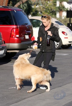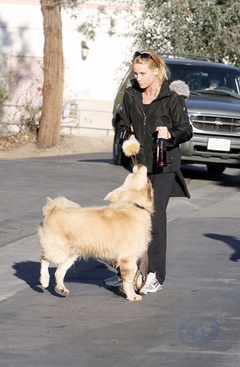 Nicollette Sheridan z psem na spacerze, Calabasas