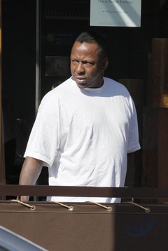 Bobby Brown z dziewczyna wychodzi z restauracji w Beverly Hills