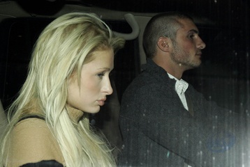 Paris Hilton i Stavros Niarchos probuja sie ukryc przed paparazzi wychodzac z baru Woo Lae Oak Of Beverly Hills