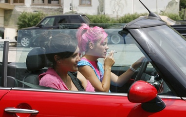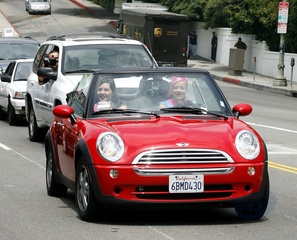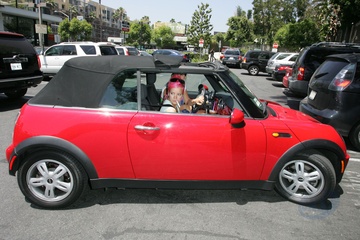 Lily Allen w swoim samochodzie Mini Cooper, Los Angeles