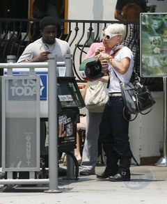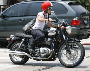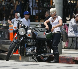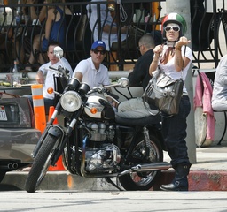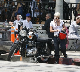 Pink na motorze w meksykanskim kasku, Beverly Hills
