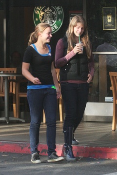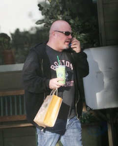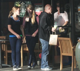 Michael Chiklis z corkami Autumn i Odessa wychodzi z kawiarnii Starbucks, Bel-Air