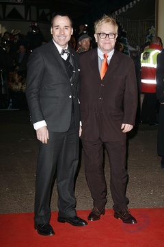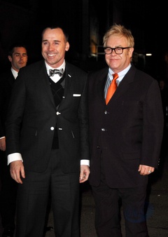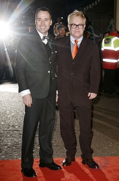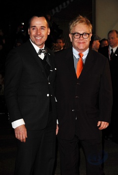David Furnish i Elton John na premierze filmu "Australia", Londyn