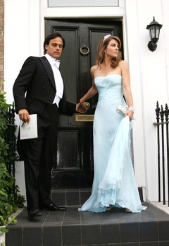 Elizabeth Hurley i Arun Nayar wychodza z domu w Londynie