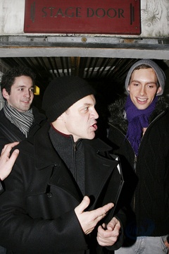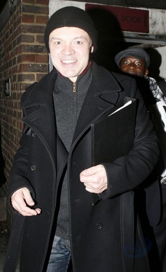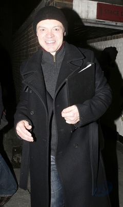 Graham Norton wychodzi z teatru The Playhouse w Londynie