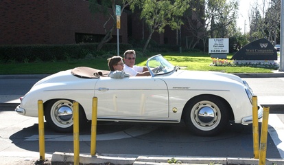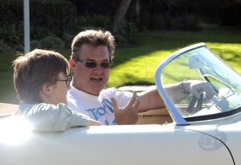 Kurt Russell w samochodzie Porsche Speedster, Santa Monica