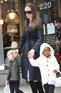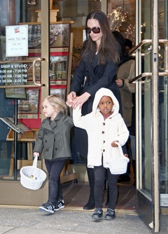 Angelina Jolie z corkami Zahara i Shiloh Nouvel na zakupach Lee's Art Shop, Nowy Jork