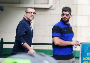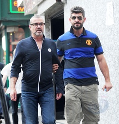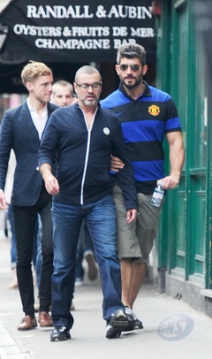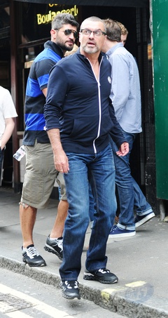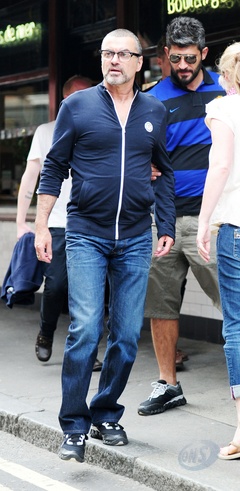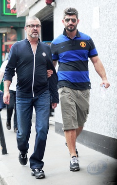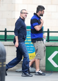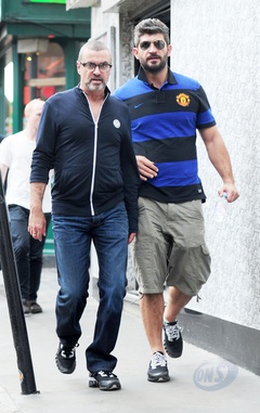 George Michael i jego chlopak Fadi Fawaz wracaja ze spaceru z psami, Londyn