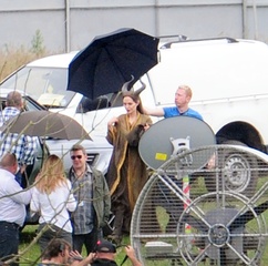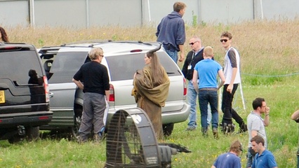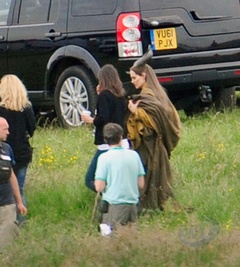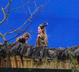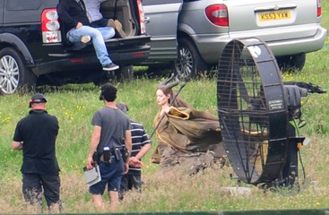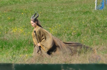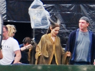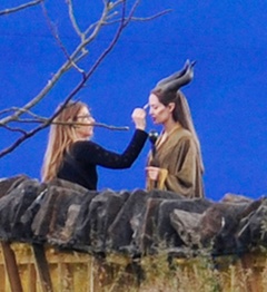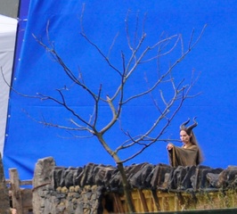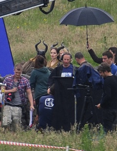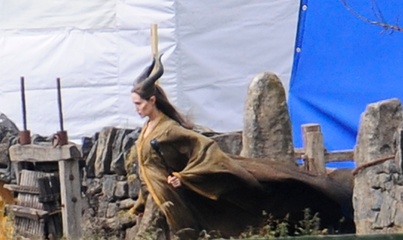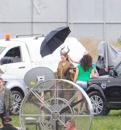 Angelina Jolie w rogach na planie zdjeciowym "Maleficent", Buckinghamshire