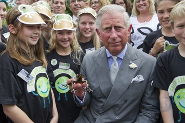 Ksiaze Karol podczas spotkania z dziecmi, Gloucestershire