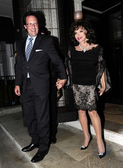 Percy Gibson i Joan Collins ida na przyjecie urodzinowe, Londyn