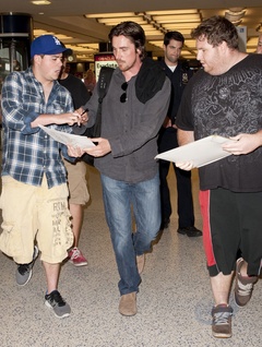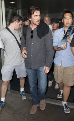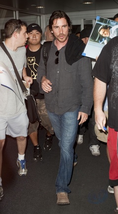 Christian Bale z rodzina na lotnisku, Nowy Jork