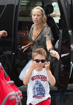 Sheryl Crow z synem na lotnisku Lax, Los Angeles