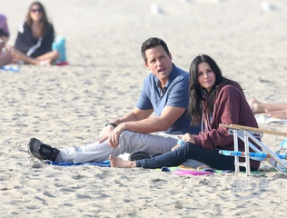 Courtney Cox i Josh Hopkins na planie Cougar Town, Santa Monica