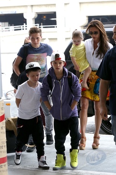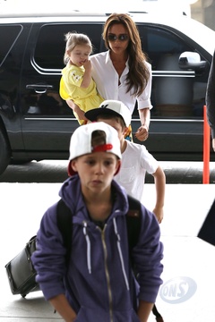 Victoria Beckham z dziecmi na lotnisku Lax, Los Angeles