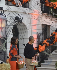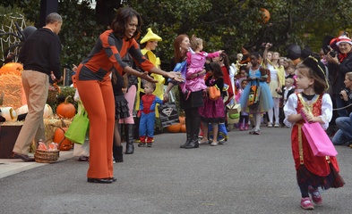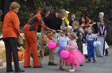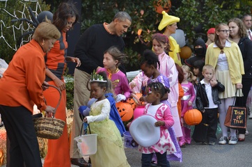Prezydent USA Barack Obama rozdaje dzieciom cukierki przed South Portico, Washington