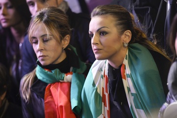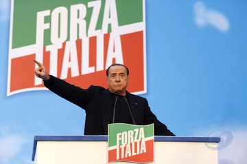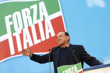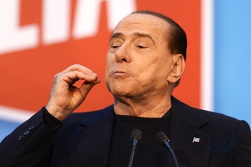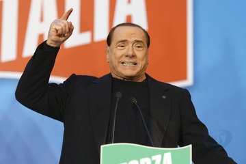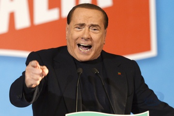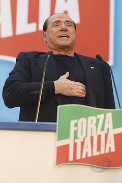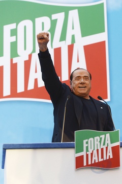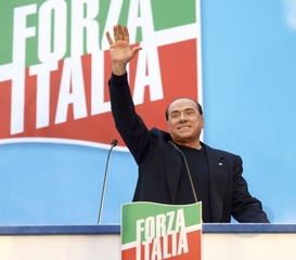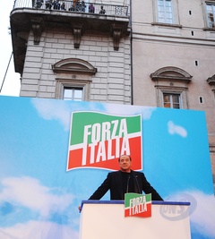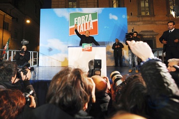 Silvio Berlusconi przemawia przed swoja rezydencja, Palazzo Grazioli w Rzymie
