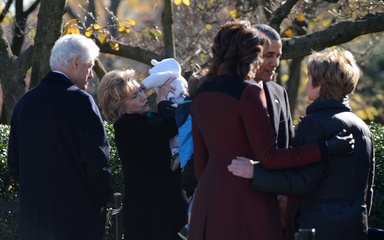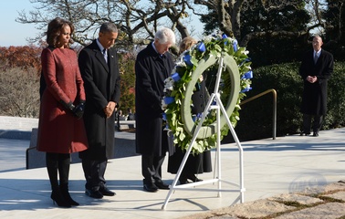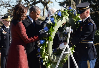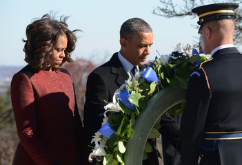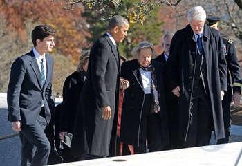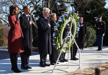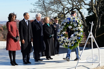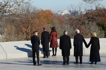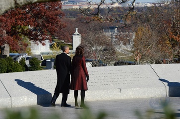 Para prezydencka sklada wieniec pod pomnikiem Johna F. Kennedy'ego, Virginia