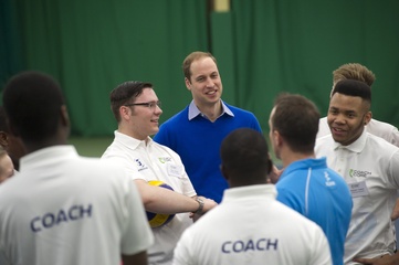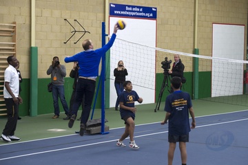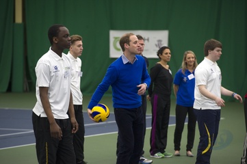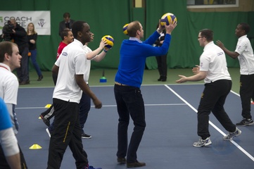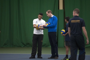 Ksiaze William gra w siatkowke w Centrum Sportu Westway, Londyn