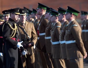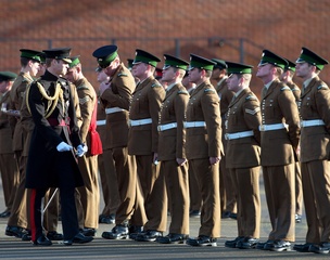 Ksiaze William z wizyta w 1. Batalionie Irish Guards w Mons Barrack, Aldershot, Londyn