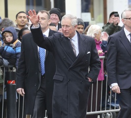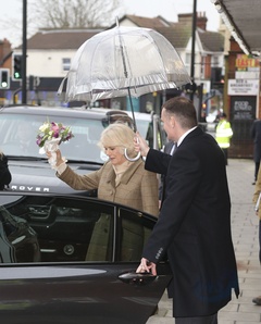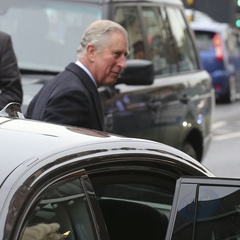 Ksiaze Karol i Camilla w drodze do teatru Palace