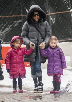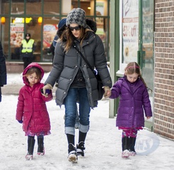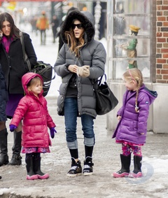 Sarah Jessica Parker z corkami w puchowych kurtkach