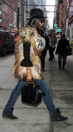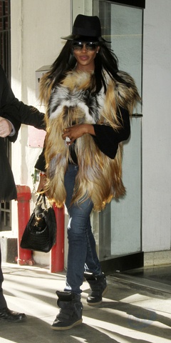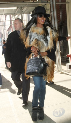 Naomi Campbell w futrzanej kamizelce, Nowy Jork
