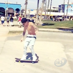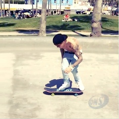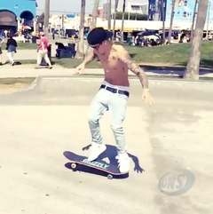 Nowosci z Twittera - Justin Bieber bez koszulki na deskorolce