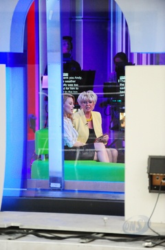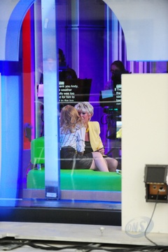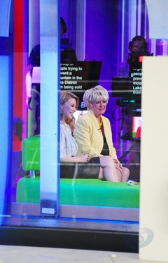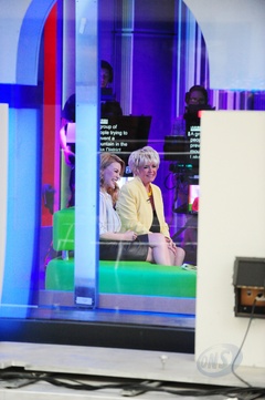 Kylie Minogue i Gloria Hunniford w studiu telewizyjnym, Londyn