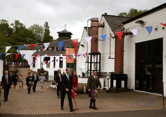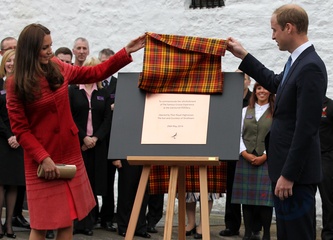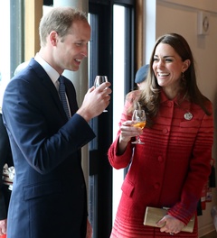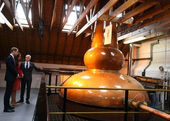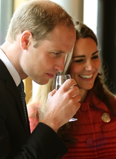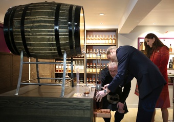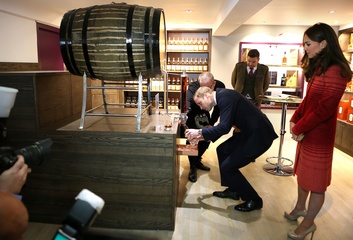 Ksiaze William i Ksiezna Kate degustuja whisky w Crieff, Szkocja