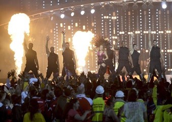 Kylie Minogue w pioropuszu zapiewala na zakonczeniu 20. Commomwealth Games w Glasgow