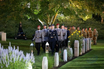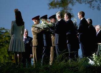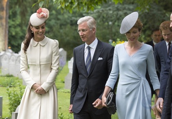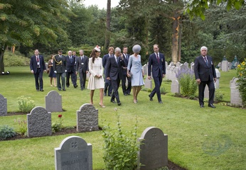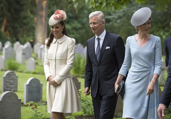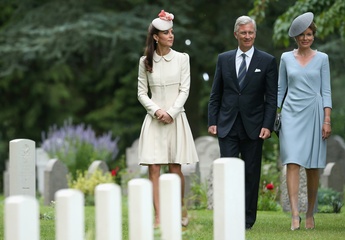 Ksiezna Kate, ksiaze William i ksiaze Harry zlozyli kwiaty poleglym zolnierzom na Cmentarzu Wojskowym pod Mons, Belgia 57