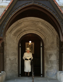 Krolowa Elzbieta modli sie za poleglych w I Wojnie Swiatowej w Crathie