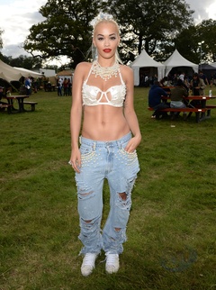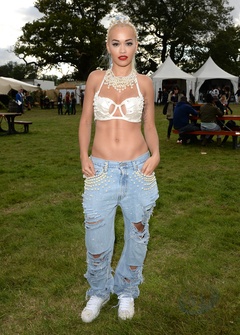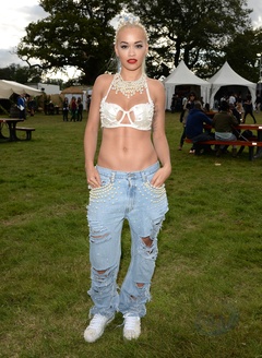 Rita Ora w biustonoszu na V Festiwalu 2014 w Hylands Park