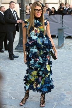 Anna dello Russo w kolorowej i pierzastej kreacji