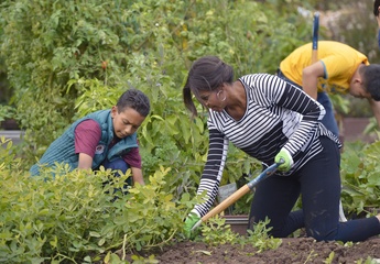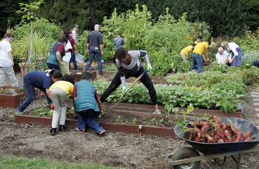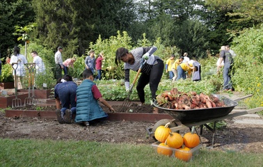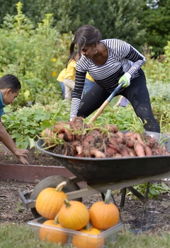 Michelle Obama pracuje z uczniami w ogrodzie