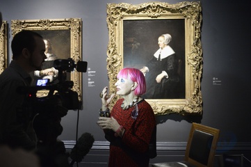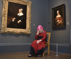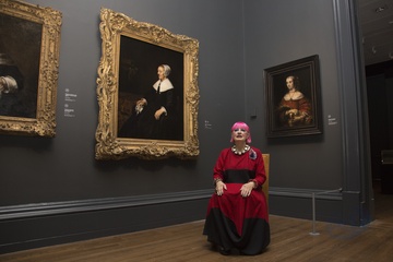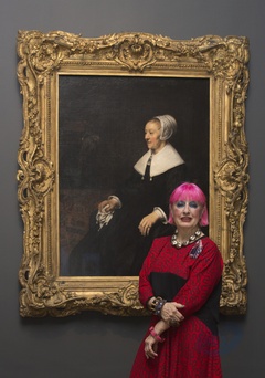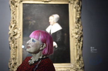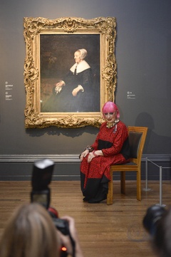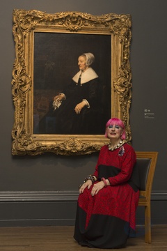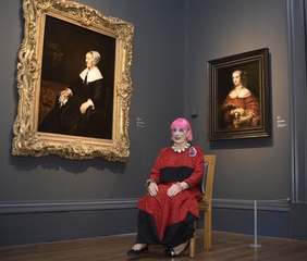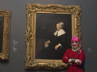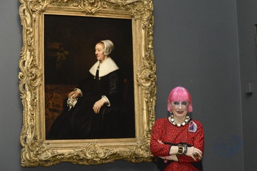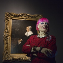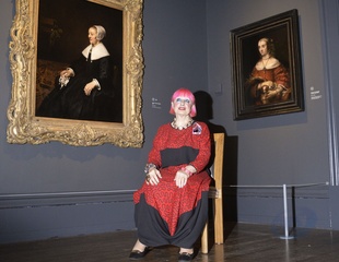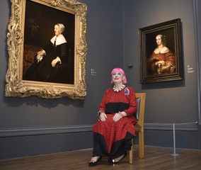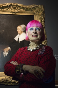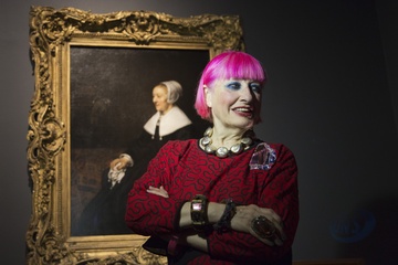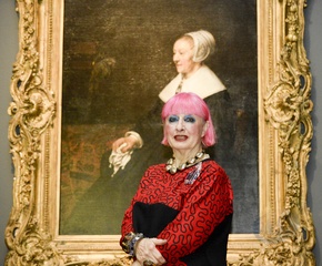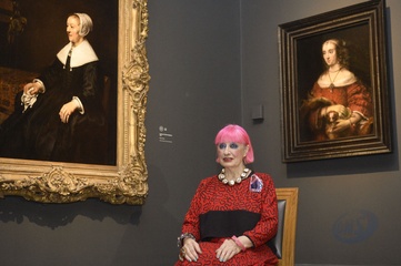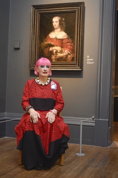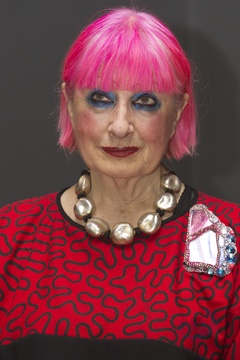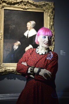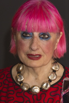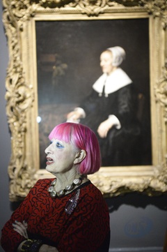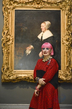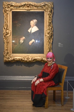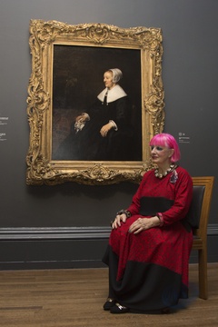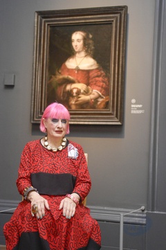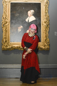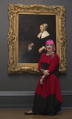 Projektantka mody Zandra Rhodes pozuje w galerii sztuki