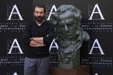 Zarosniety Antonio Banderas - zwyciezca ''Goya Award'' w Madrycie