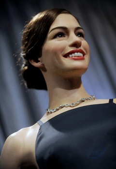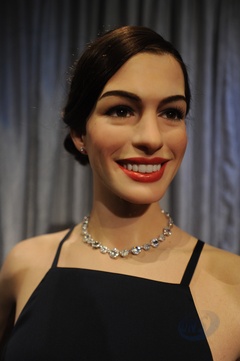 Woskowa Anne Hathaway w sukni z diamentami w Madame Tussauds w Nowym Jorku