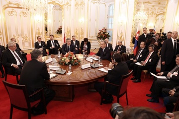 Bronislaw Komorowski na spotkaniu Krojow Grupy Wyszehradzkiej (V4) w Bratyslawie