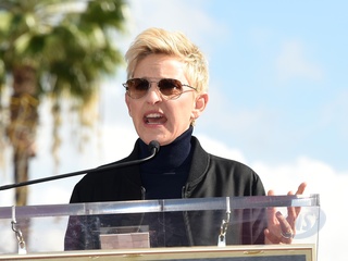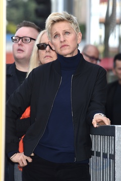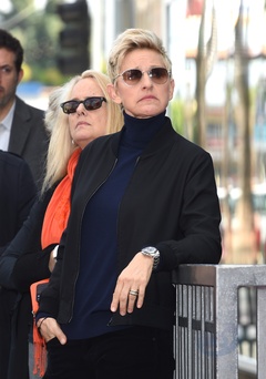 Leron Gubler, Ellen DeGeneres, Pharrell Williams, Tom LaBonge and Mitch O'Farrell