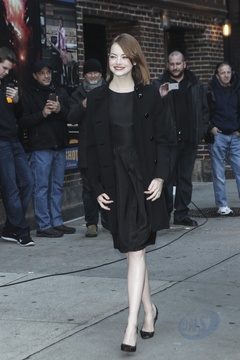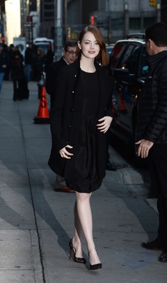Emma Stone przybyla do show DavidaLettermana w Nowym Jorku