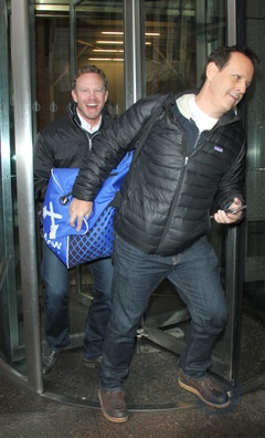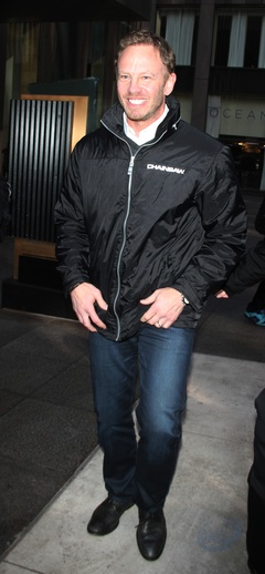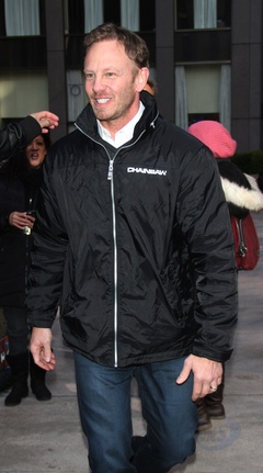 Rozbawiony Ian Ziering wychodzi ze studia SiriusXM