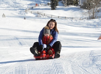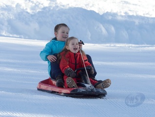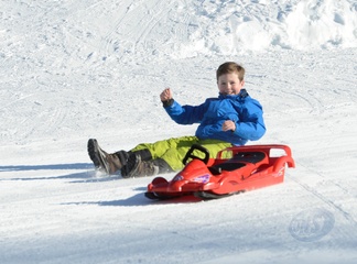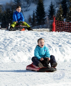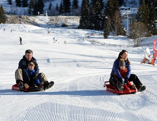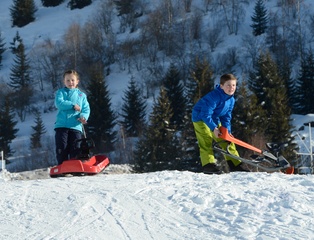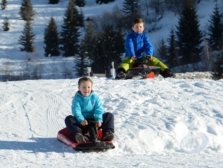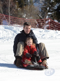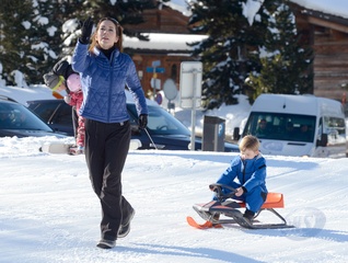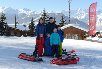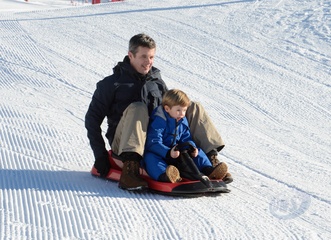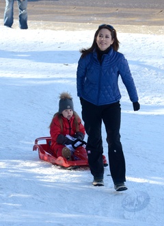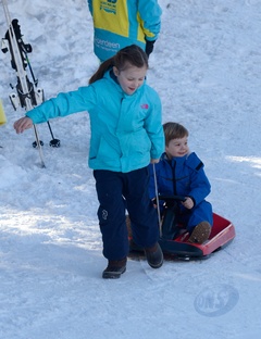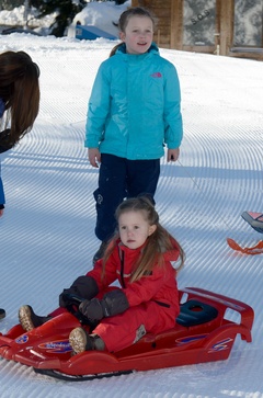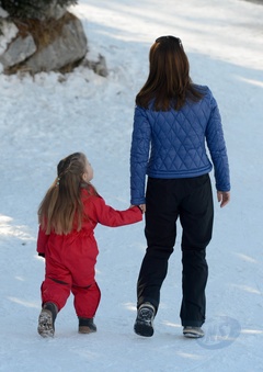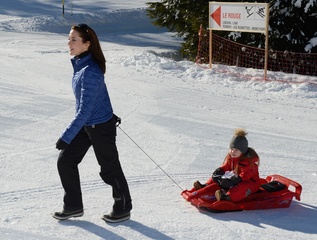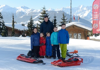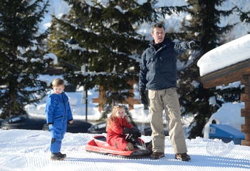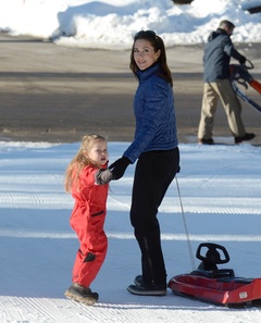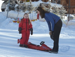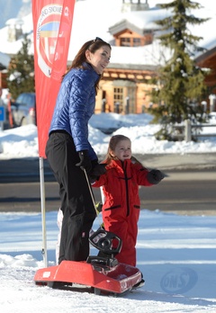 Ksiaze Frederik i Ksiezna Mary z dziecmi na sniegu w Szwajcarii